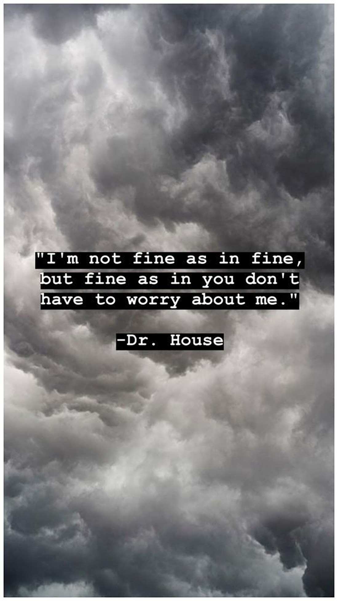 As a society, we adopt familiarities with each other. We have standard questions and standard answers that we use in everyday conversation. Typically when we see or talk to someone we ask “How are you?” and 99.9% of the time our answer will be “I’m fine.” We all fall into that familiar repartee. It’s ingrained in us. We don’t even think about it. It’s a standard question and an expected answer. So what happens when the “I’m fine” answer isn’t what’s given? Do we really want to hear something different? If we do, what happens next? I can say from experience that since my surgery when asked how I am, my truthful answer would be anything but “fine”! Scared, tired, frustrated, hurting, fed up, in pain, and a lot of poignant expletives… but really not fine. But “fine” is an easier answer. It’s the answer people want to hear..not because they don’t care, but because they want you to be. And that’s a great thing. But “fine” is a facade. It’s an answer that doesn’t require an explanation. It’s an answer that doesn’t require you to bare your soul to someone and divulge all the things that are anything but “fine”. So we answer as we’ve learned to do. And we smile and keep the wall up and pretend for the person asking and for ourselves that we are fine whether its the truth or not.